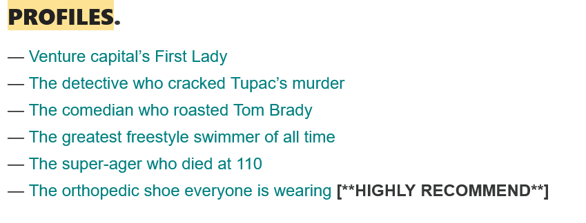 Polina writes a popular newsletter called The Profile that is essentially this Who? question on steroids. If you are interested in people, her’s is the newsletter for you.